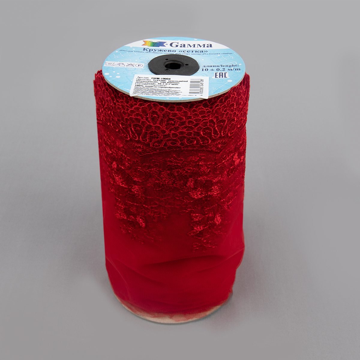 Кружево "Gamma" "сетка" 190 мм GKM-19004 в рулоне 10 м ± 0.2 Турция TL012RE красный