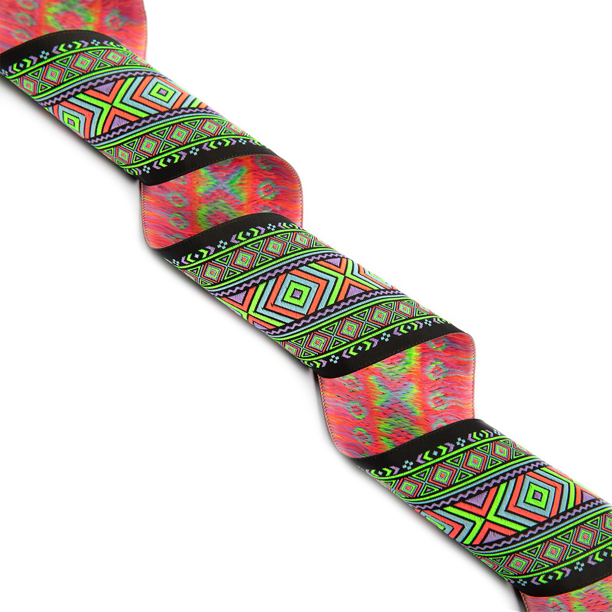 Жаккардовая лента с различным орнаментом - это лента с рисунком, который не  наносится сверху, а образуется плетением нитей самой тесьмы, и благодаря этому никогда не сотрется и не поблекнет. Жаккардовая лента выглядит как вышивка гладью, и придает фольклорный колорит любому изделию. Используется в качестве декоративного элемента при производстве  одежды,  художественных изделий, сувенирной атрибутики и т.п.