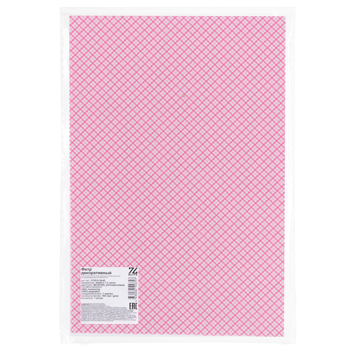Фетр "BLITZ" FCR10-30/45 декоративный 1 мм 30 см х 45 см №CPF008_клетка/розовый
