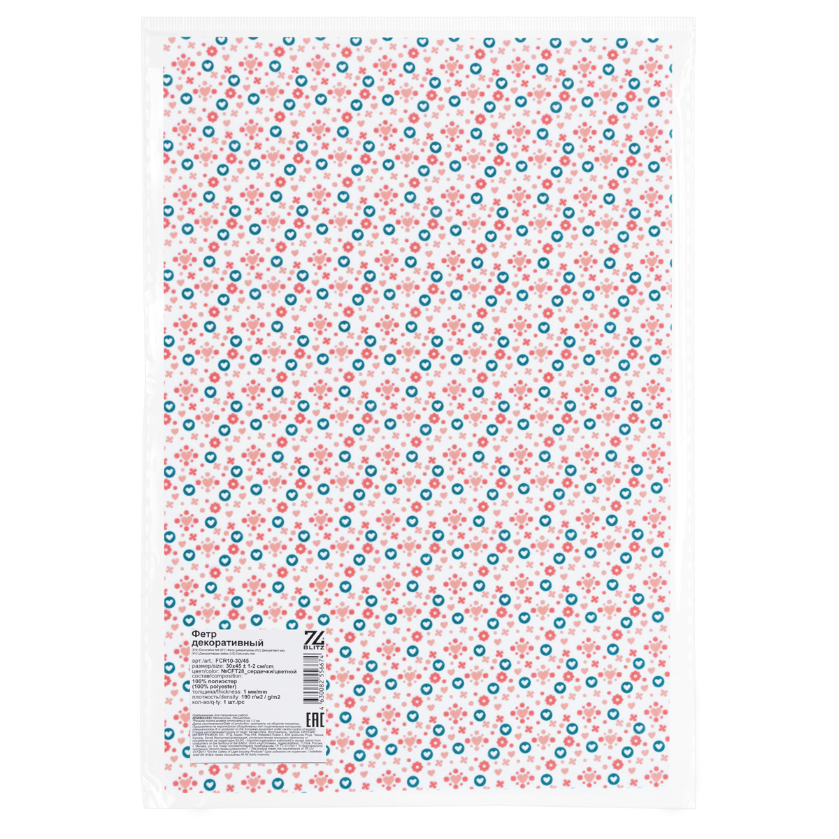 Фетр "BLITZ" FCR10-30/45 декоративный 1 мм 30 см х 45 см №CFT28_сердечки/цветной