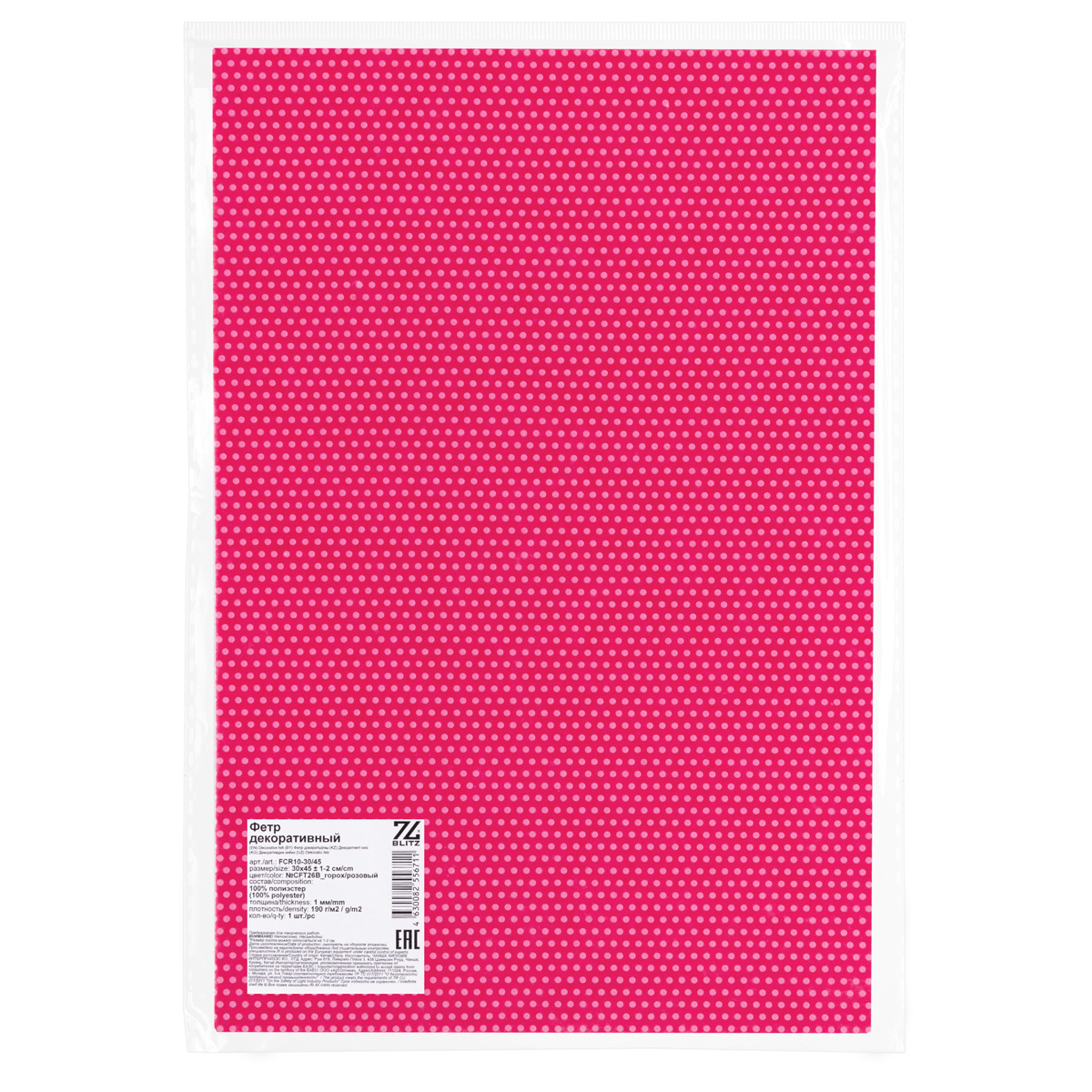 Фетр "BLITZ" FCR10-30/45 декоративный 1 мм 30 см х 45 см №CFT26B_горох/розовый