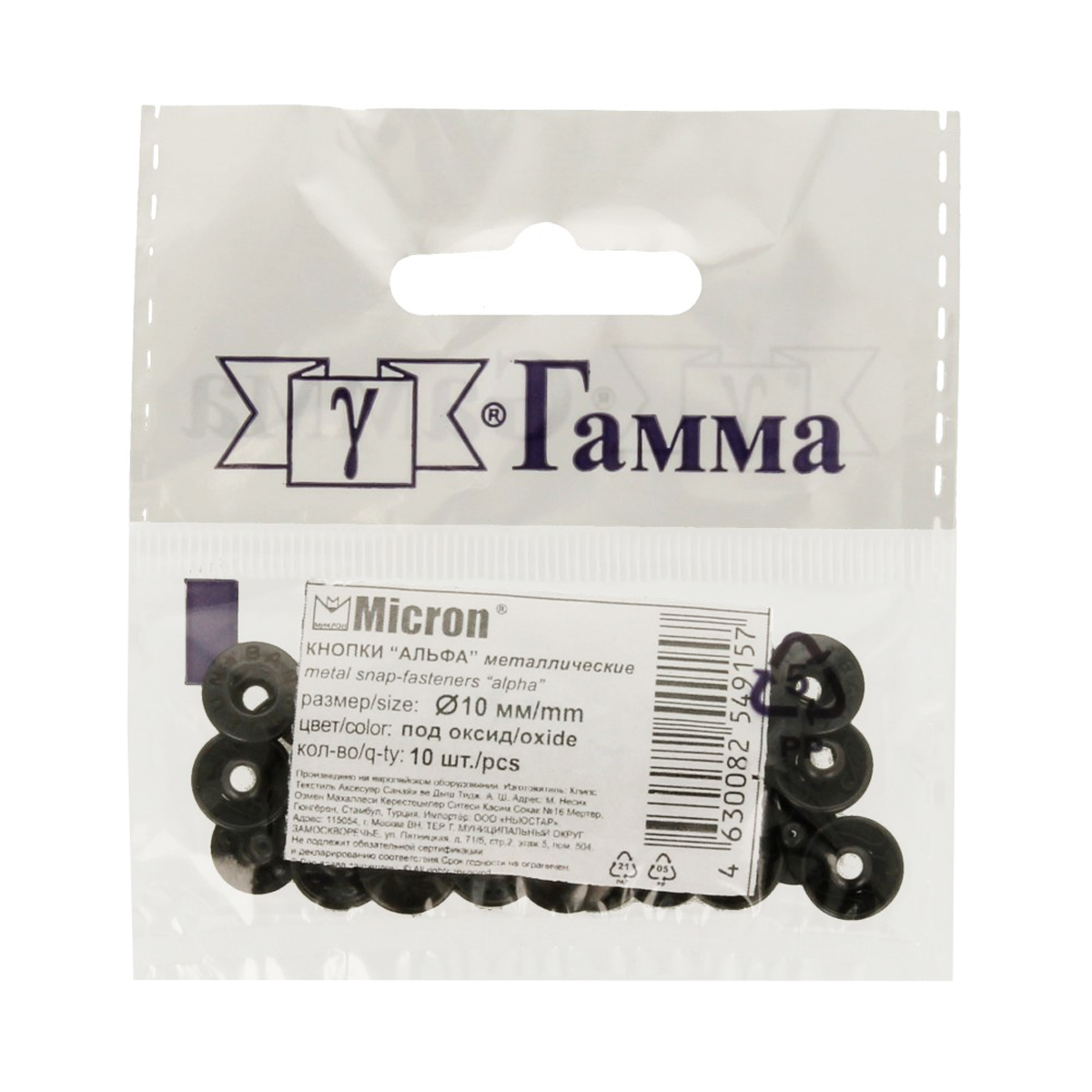 Кнопка "Micron" "альфа" металл d 10 мм ФАСОВКА 10 шт. гладкие оксид