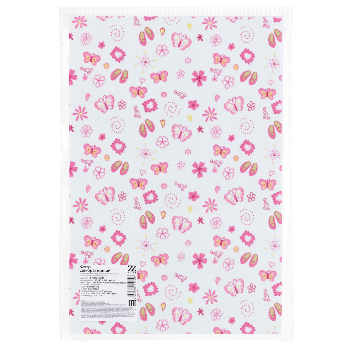 Фетр "BLITZ" FCR10-30/45 декоративный 1 мм 30 см х 45 см №CPF105_бабочки/розовый