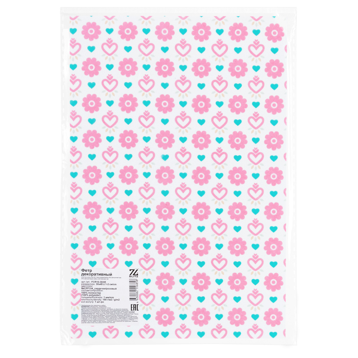 Фетр "BLITZ" FCR10-30/45 декоративный 1 мм 30 см х 45 см №CPF104_сердечки/розовый