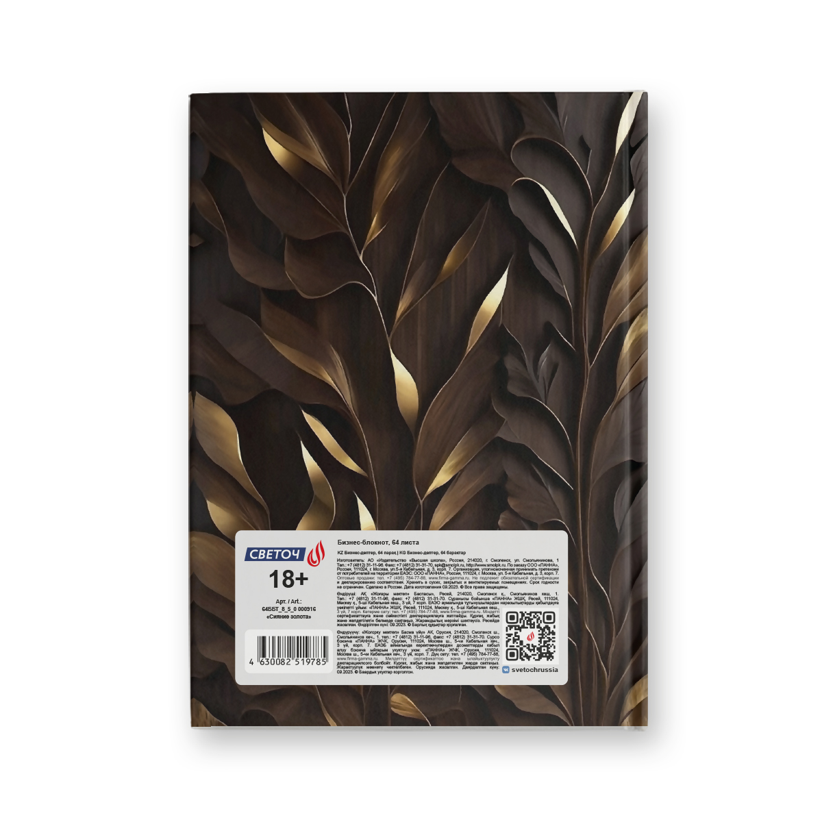 "Светоч" Бизнес-блокнот, мат. лам. + тис. золотой фольгой, тониров. блок 64ББТ_8_5_0 евроформат 64 л. французская клетка Сияние золота 000916