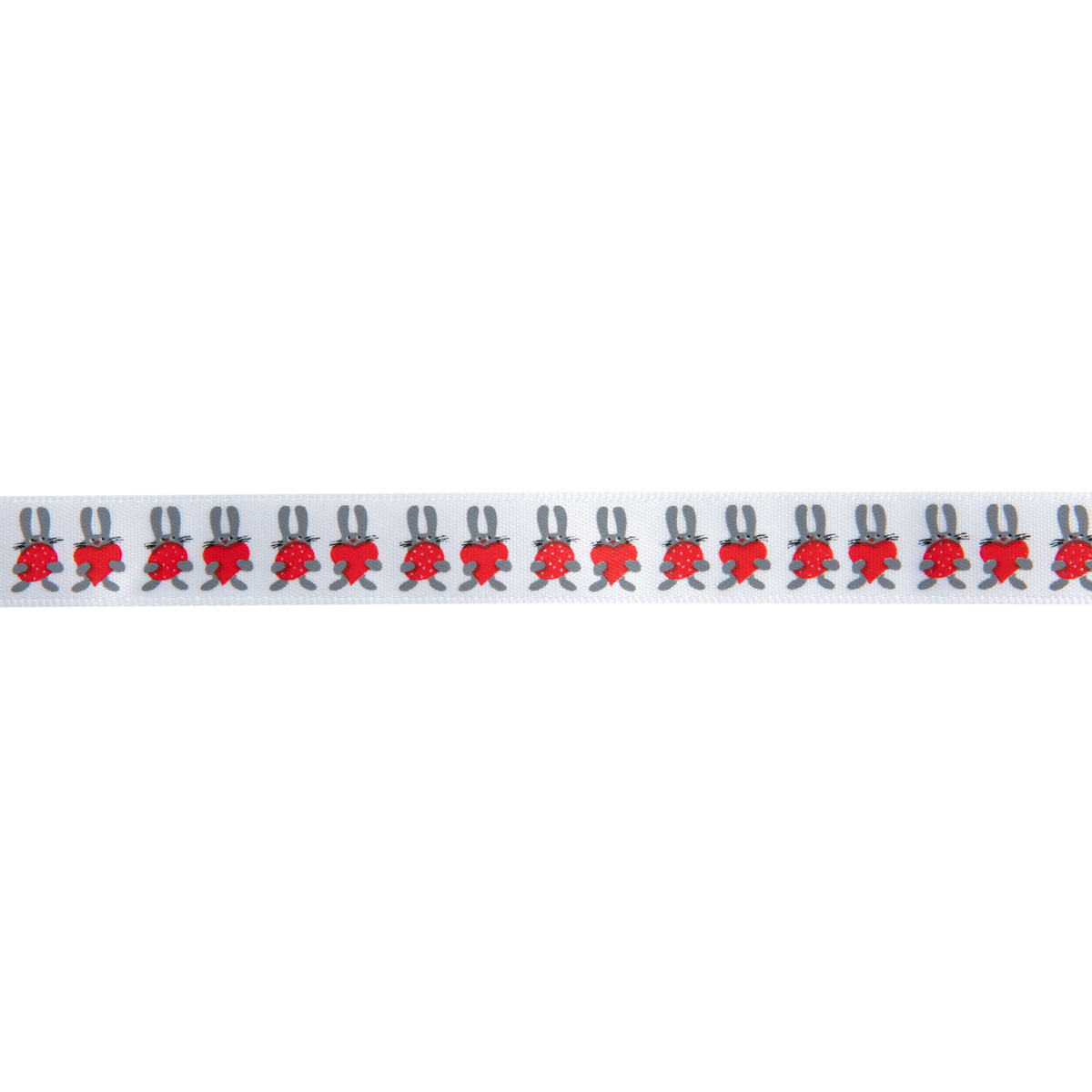 Лента атласная 12 мм ( 1/2 ") "Gamma" ALP-123 с рисунком 22.8 м ± 0.5 м H17/001 зайцы/белый
