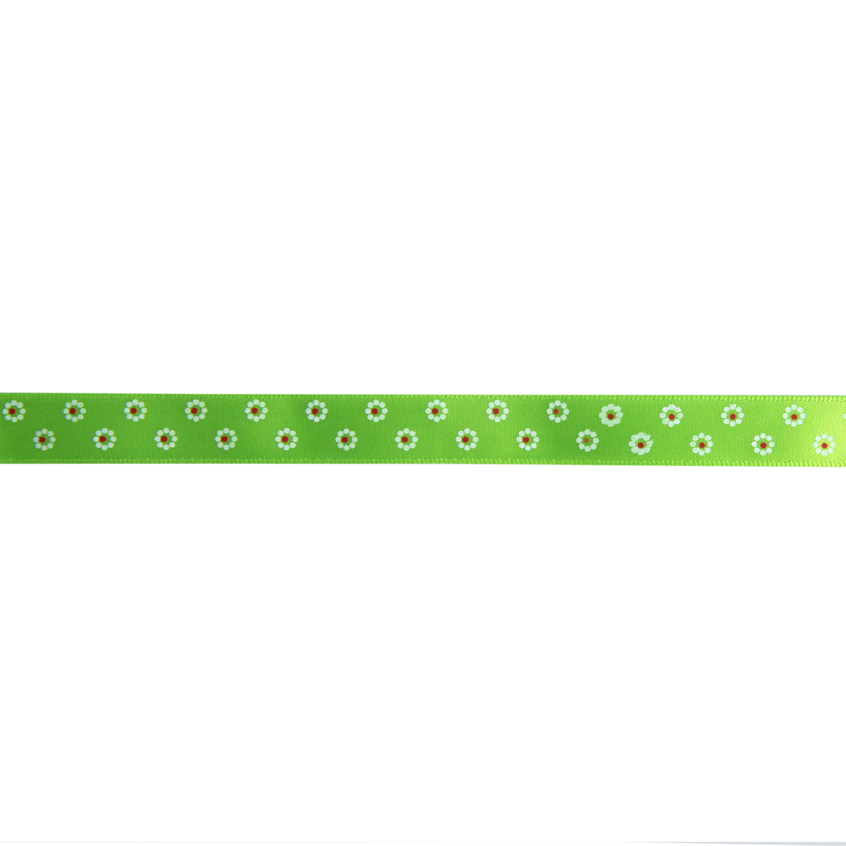 Лента атласная 12 мм ( 1/2 ") "Gamma" ALP-122 с рисунком 22.8 м ± 0.5 м F 1/147 цветы/салатовый