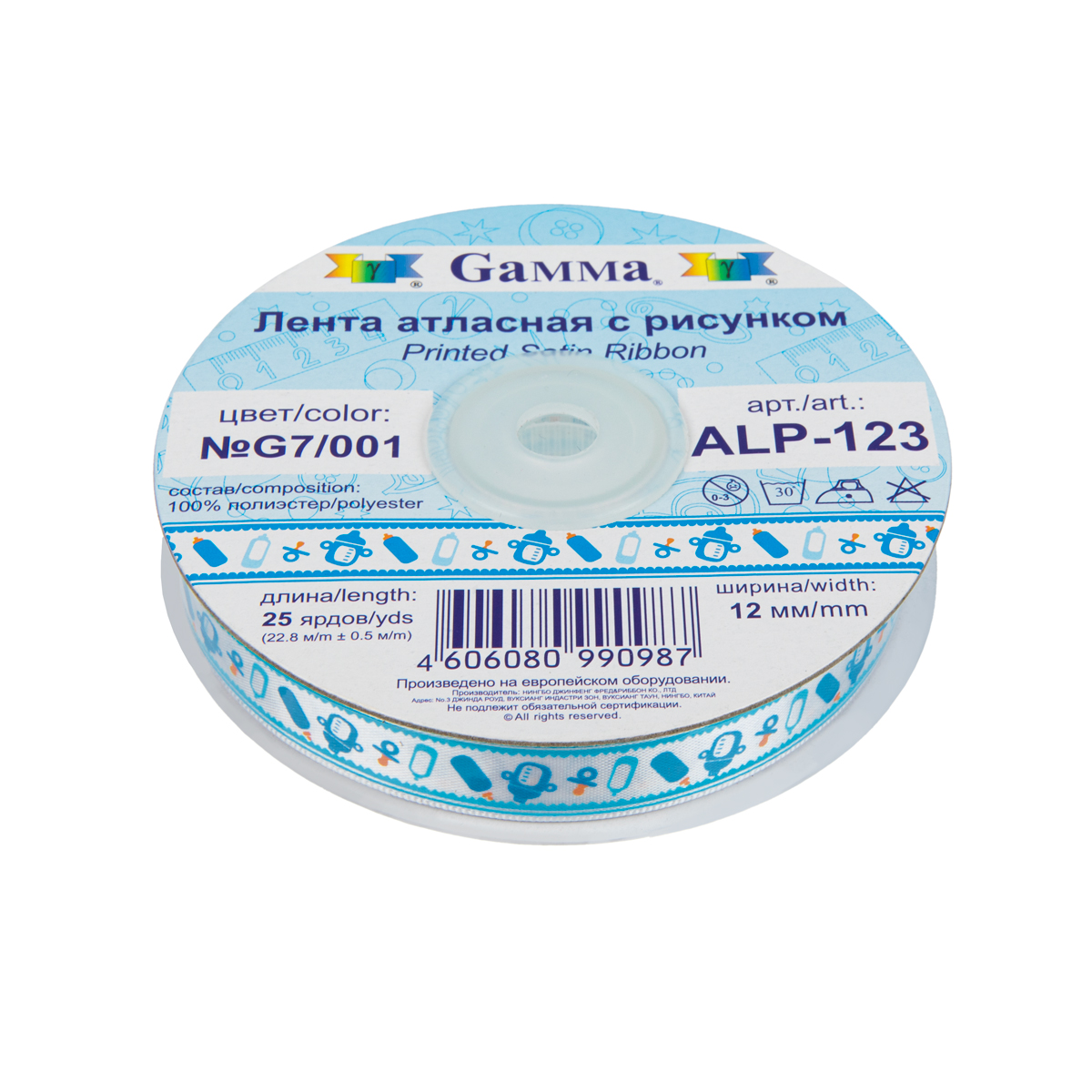 Лента атласная 12 мм ( 1/2 ") "Gamma" ALP-123 с рисунком 22.8 м ± 0.5 м G7/001 дет.вещи/белый
