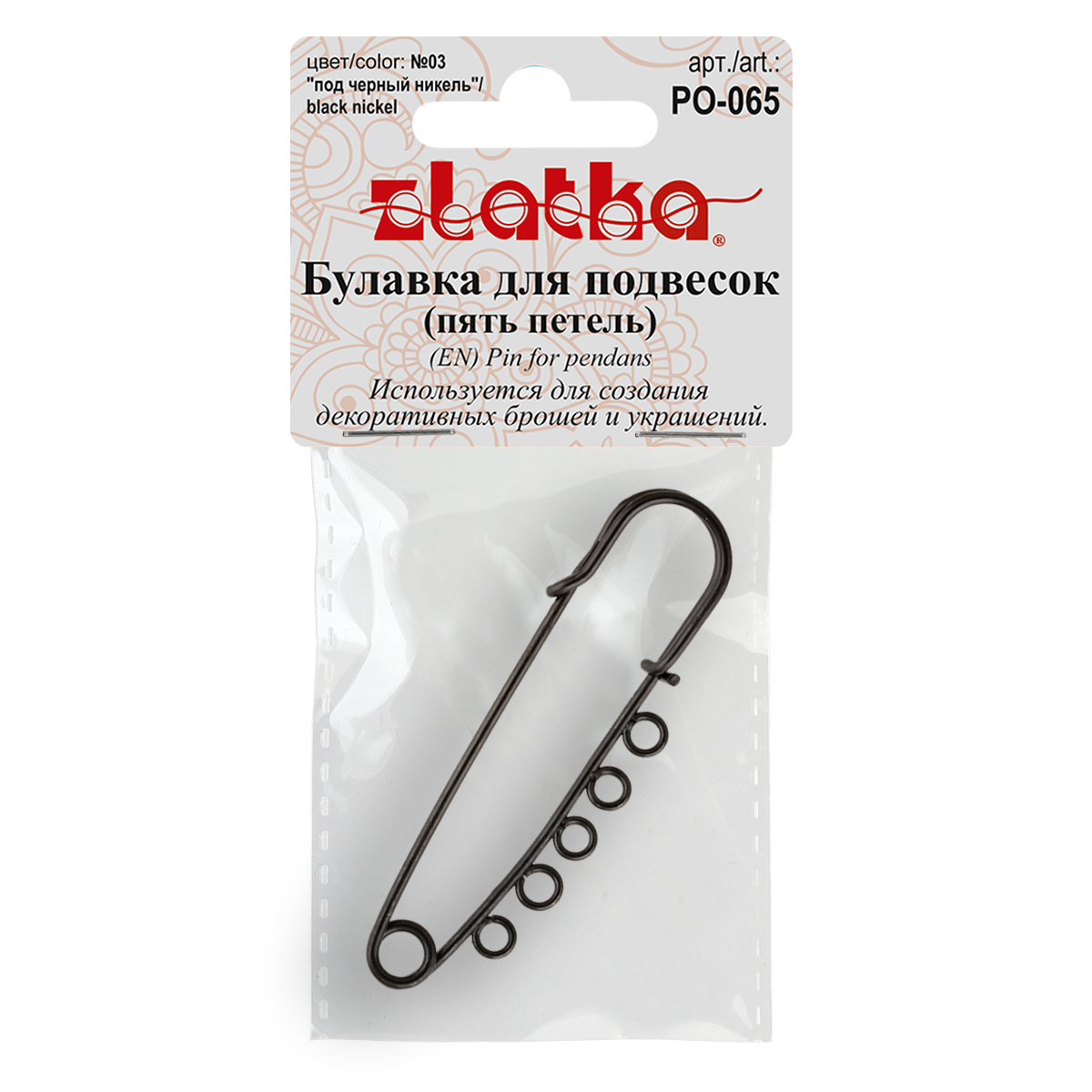 "Zlatka" Булавка для подвесок PO-065 6.5 см №03 под черный никель