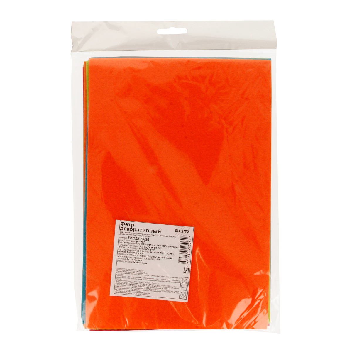 Фетр "BLITZ" FKC22-20/30 декоративный (ассорти) 2.2 мм 20 см х 30 см 5 шт ассорти №2