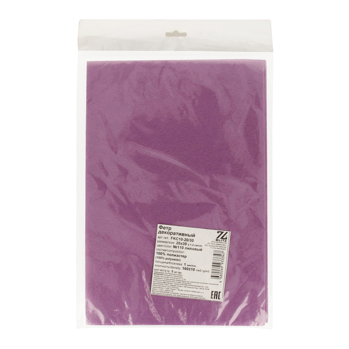 Фетр "BLITZ" FKC10-20/30 декоративный 1 мм 20 см х 30 см 5 шт №110 лиловый
