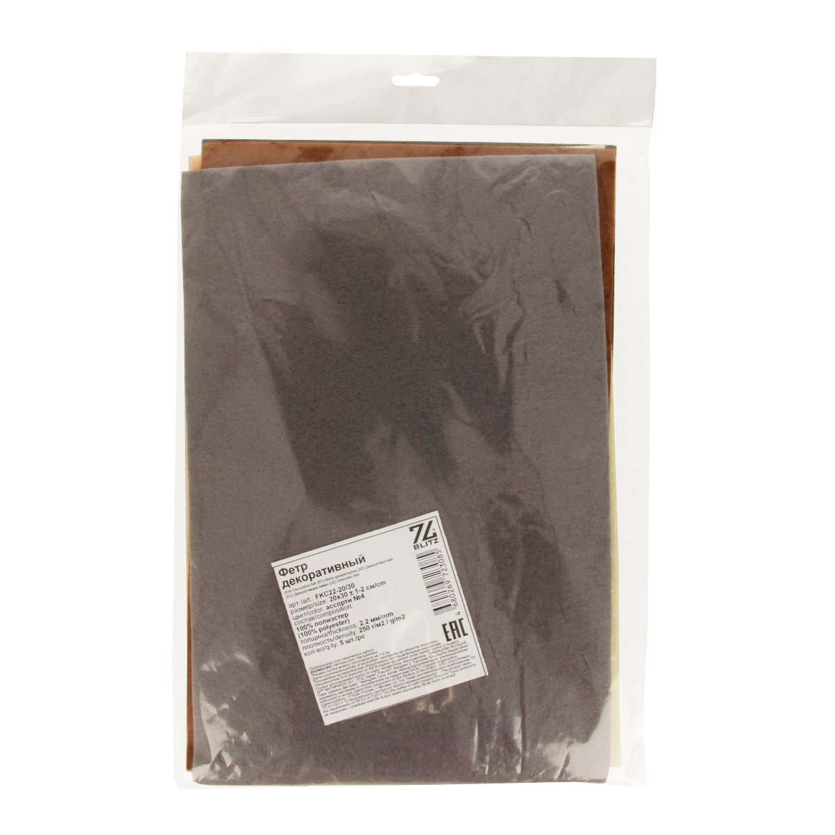 Фетр "BLITZ" FKC22-20/30 декоративный (ассорти) 2.2 мм 20 см х 30 см 5 шт ассорти №4
