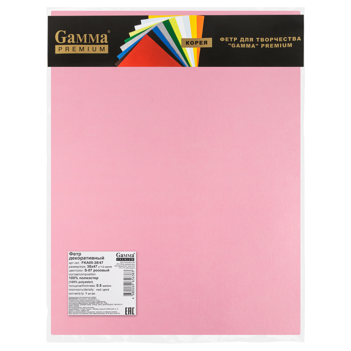 Фетр "Gamma" Premium FKA05-38/47 декоративный 0.5 мм 38 см х 47 см S-07 розовый