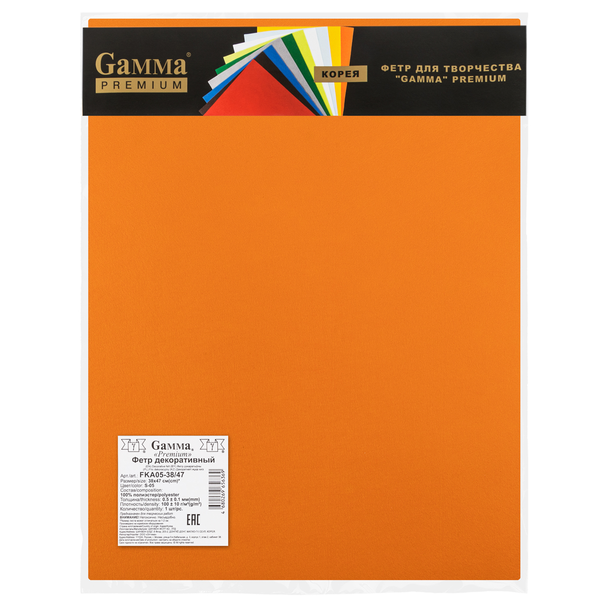 Фетр "Gamma" Premium FKA05-38/47 декоративный 0.5 мм 38 см х 47 см S-05 оранжевый