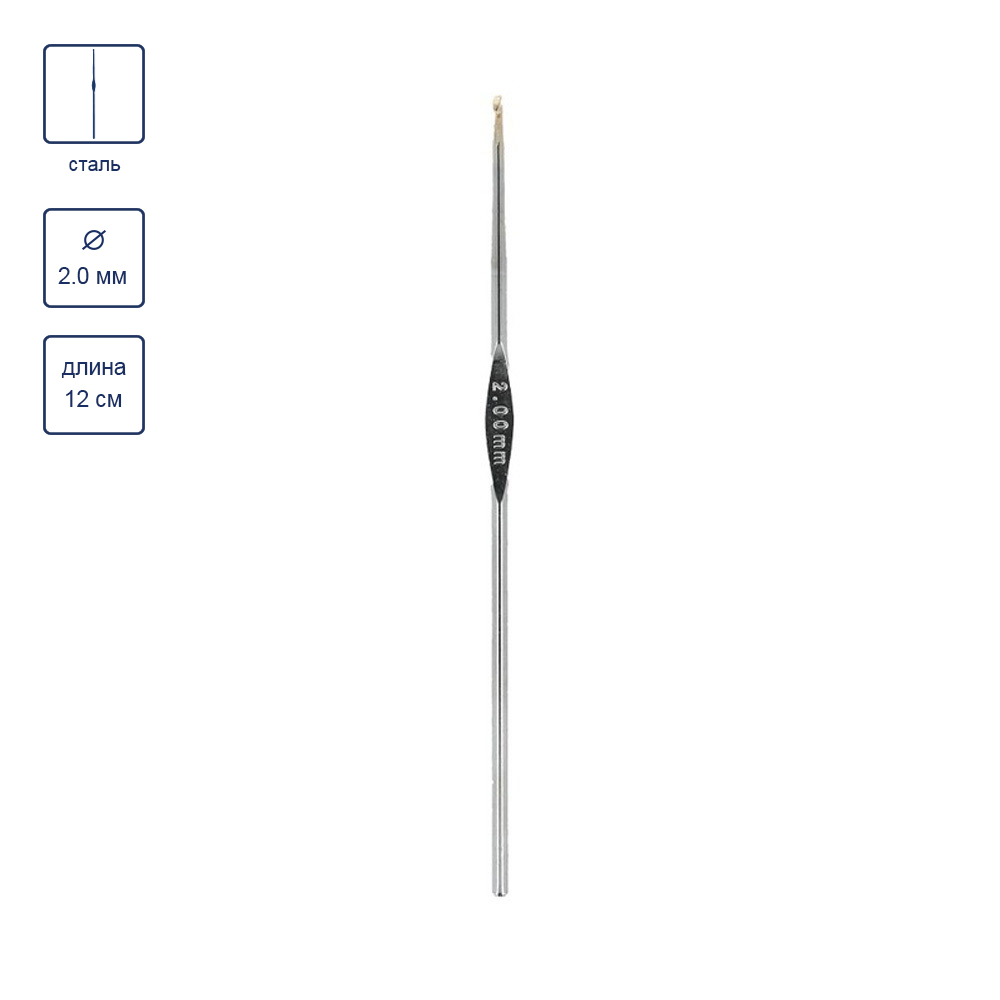 Крючки металлические "Gamma" MCH  сталь  d 2.0 мм  12 см  12 шт  в блистере для вязания ажура тонкой нитью.