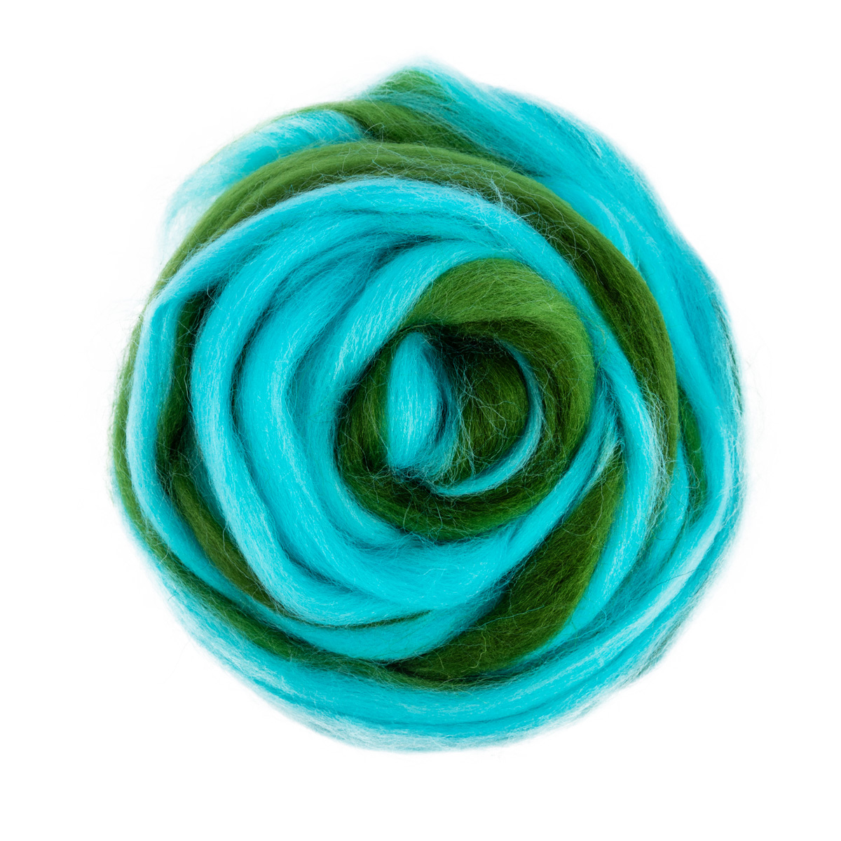 "Gamma" MY-050 "Шерсть для валяния" 100% полутонкая шерсть 50 г №6015 бирюза/киви/морские водоросли