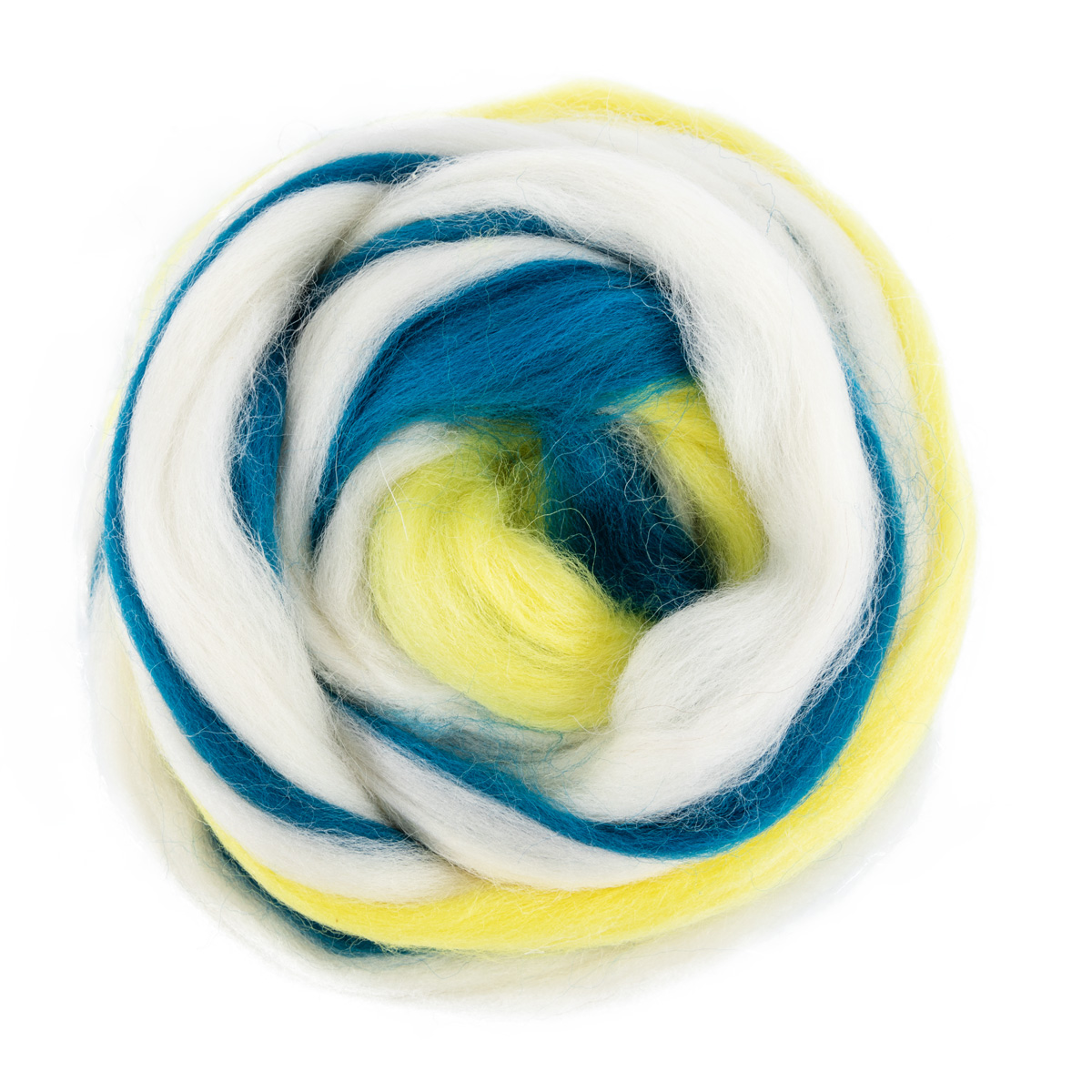 "Gamma" MY-050 "Шерсть для валяния" 100% полутонкая шерсть 50 г №6036 желтый/белый/т.синий
