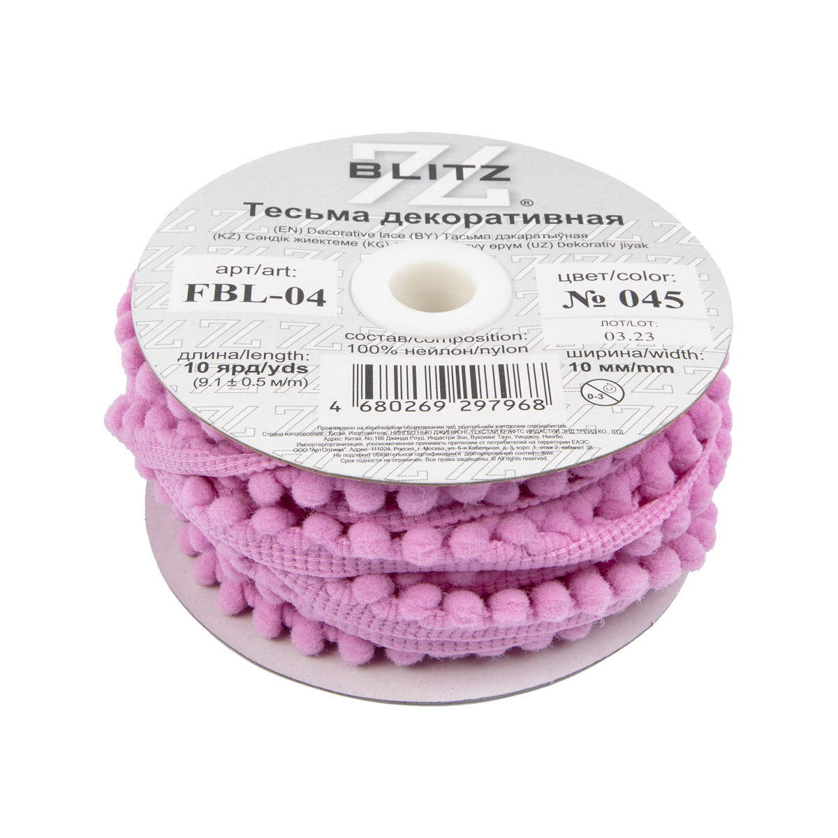 "BLITZ" тесьма декоративная FBL-04 10 мм 9.1 м ± 0.5 м №045 св-лиловый
