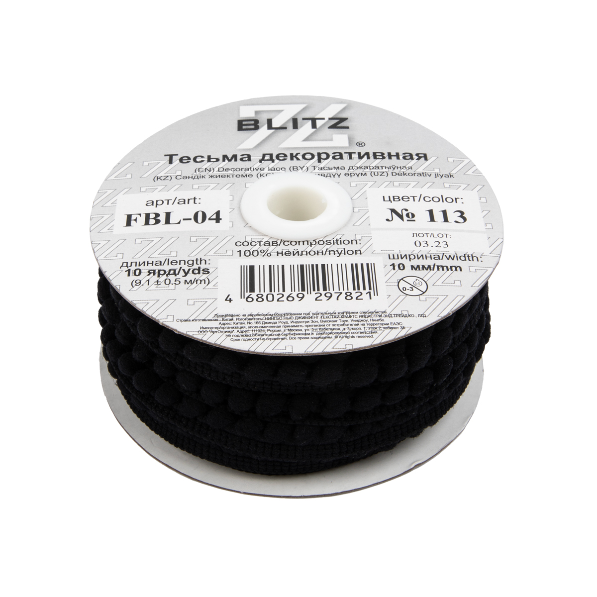 "BLITZ" тесьма декоративная FBL-04 10 мм 9.1 м ± 0.5 м №113 черный