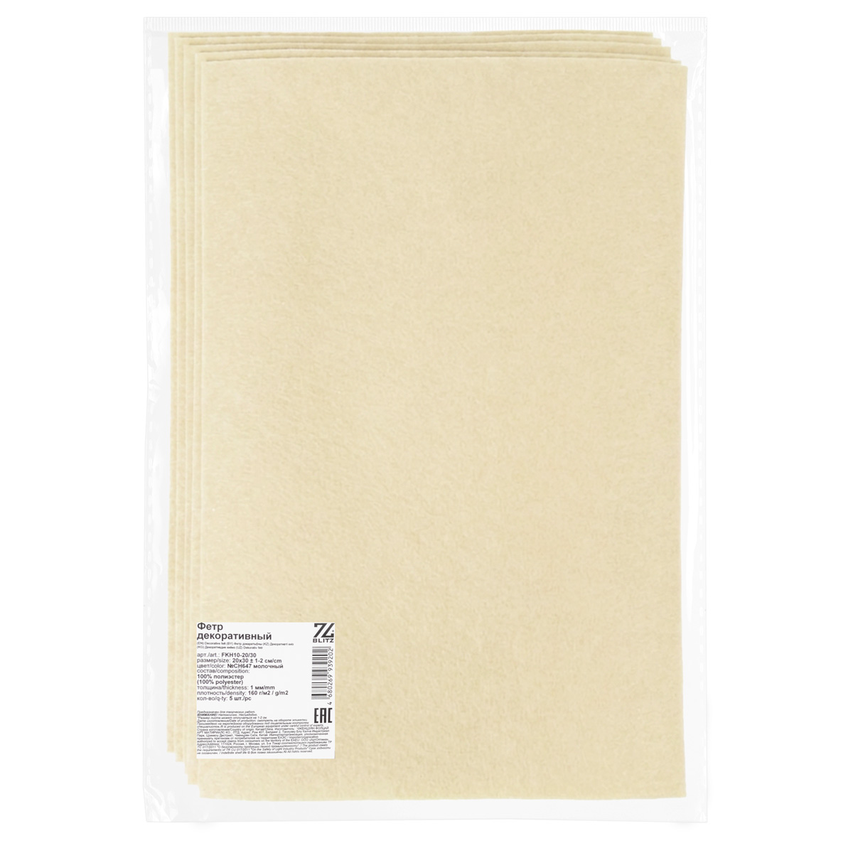 Фетр "BLITZ" FKH10-20/30 декоративный 1 мм 20 см х 30 см 5 шт №CH647 молочный