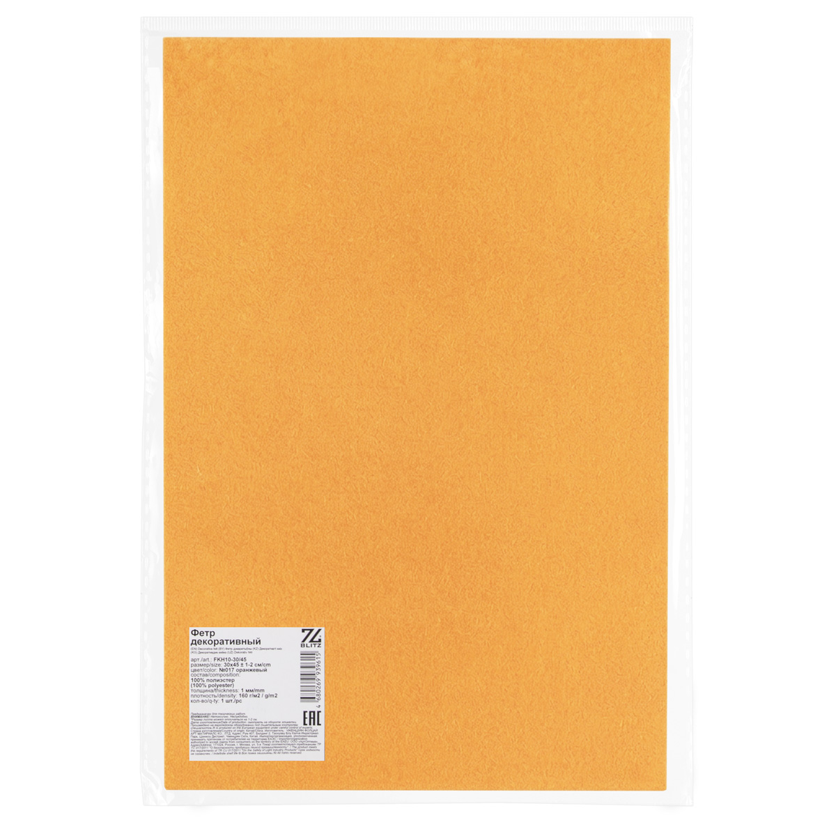 Фетр "BLITZ" FKH10-30/45 декоративный 1 мм 30 см х 45 см №017 оранжевый