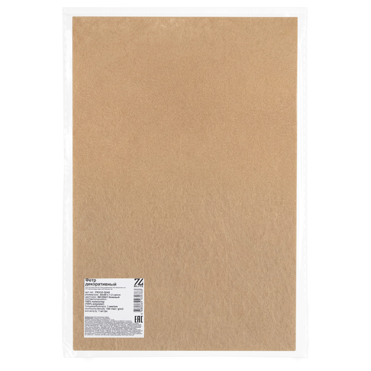 Фетр "BLITZ" FKH10-30/45 декоративный 1 мм 30 см х 45 см №CH641 бежевый