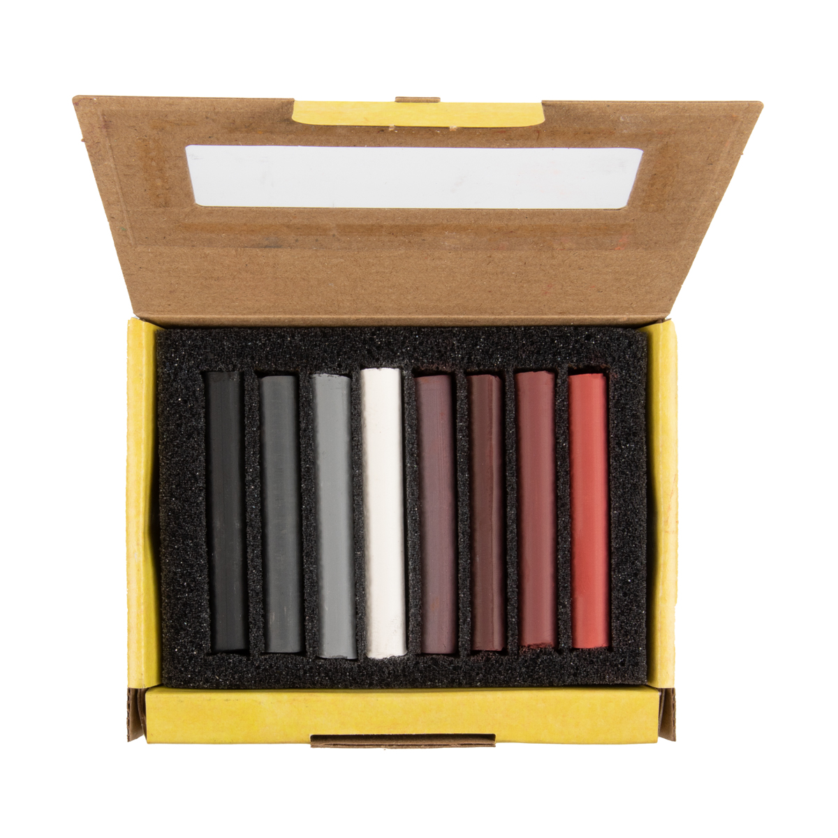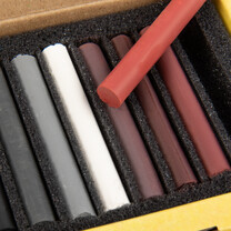 В составе художественной пастели "Аква-Колор" нет масла, воска, глины – только светостойкие пигменты, гуммиарабик и некоторые специальные добавки. Тонкий круглый мелок позволяет создавать четкие штрихи и выполнять крупные заливки. Пастель универсальны в применении, хорошо ложится на различные поверхности, может размываться водой.