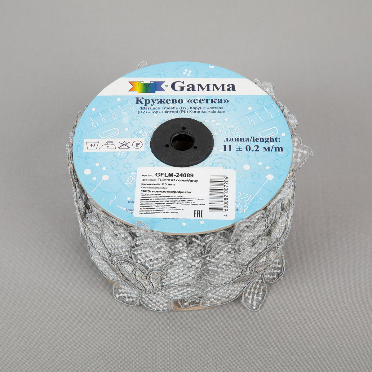 Кружево "Gamma" "сетка" 85 мм GFLM-24089 в рулоне 11 м ± 0.2 Турция TL011GR серый