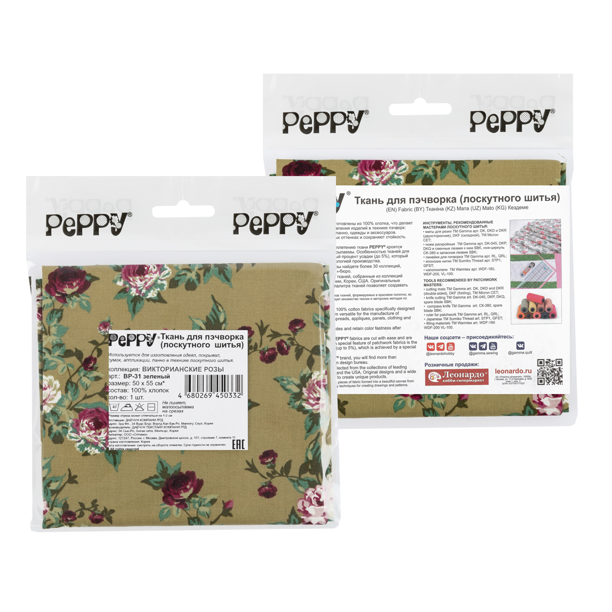 Ткань для пэчворка PEPPY ВИКТОРИАНСКИЕ РОЗЫ ФАСОВКА 50 x 55 см 146 г/кв.м ± 5 100% хлопок ВР-31 зеленый