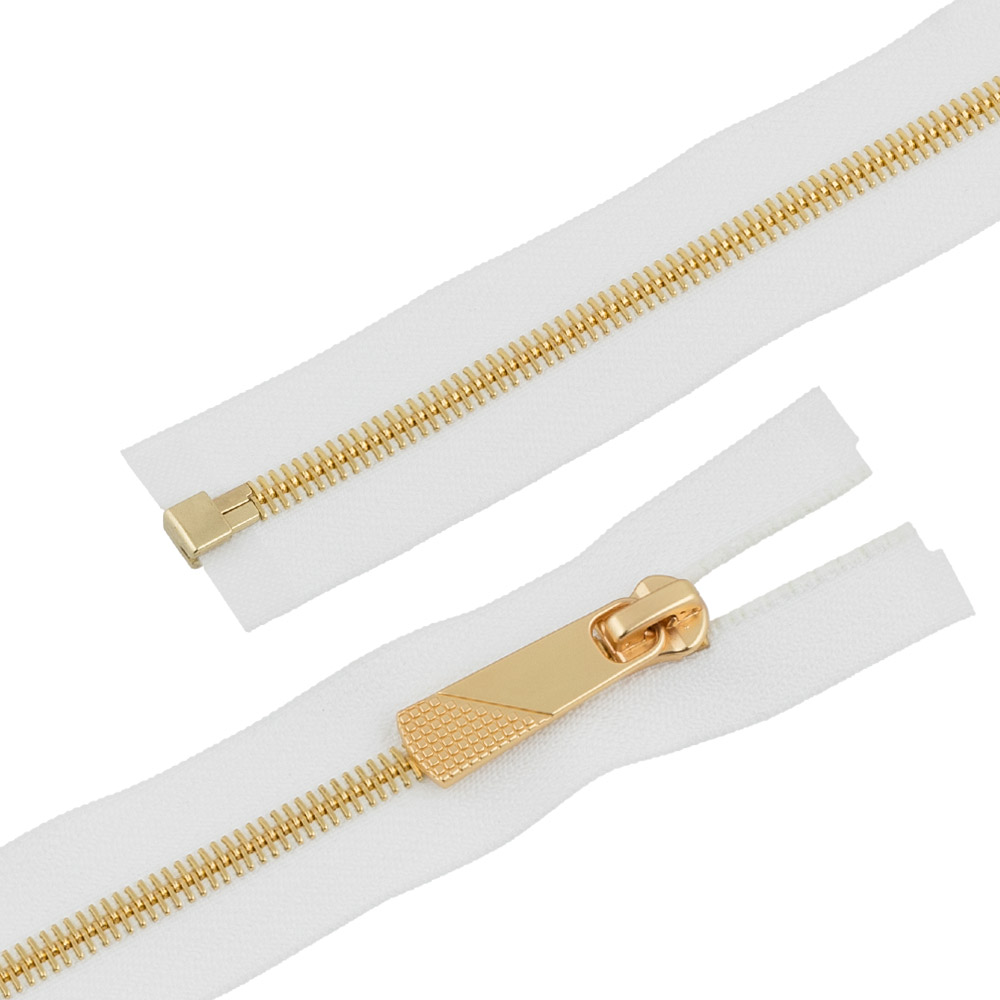 Молния Металл декоративная "Gamma" KAP-5 80 см золото однозамковая Тип 5 разъёмная №101 белый