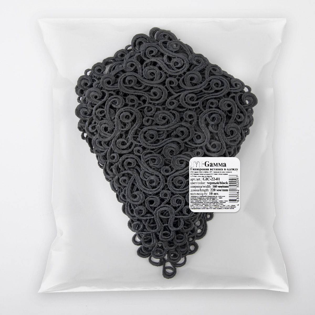 Гипюр "Gamma" Вставка 160 мм GIC-22-01 в пакете Турция черный