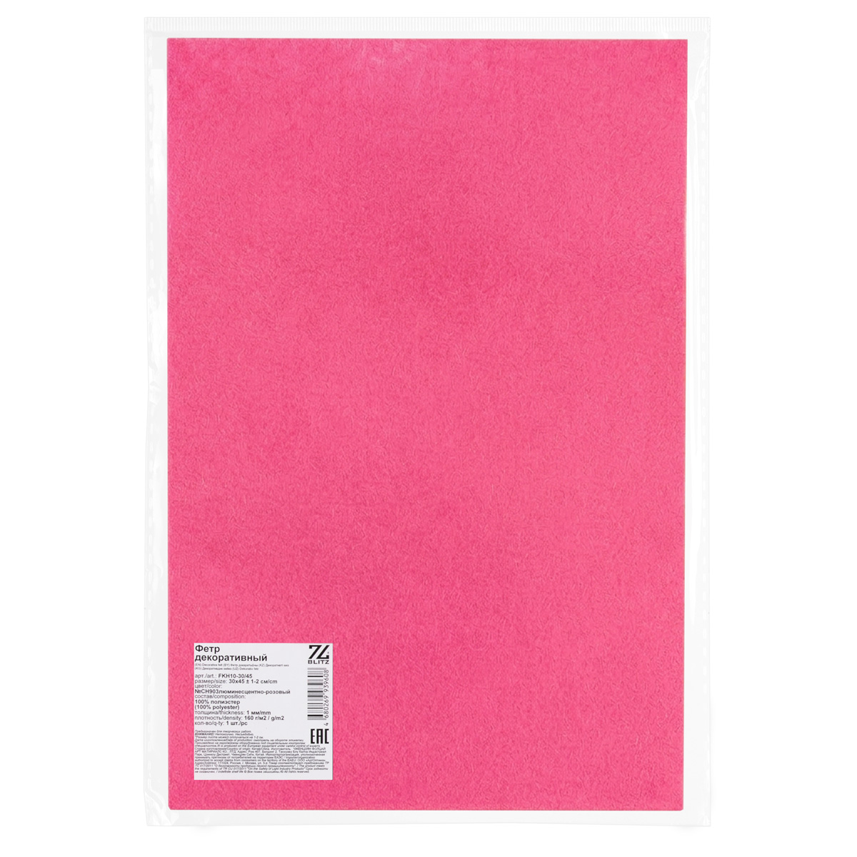 Фетр "BLITZ" FKH10-30/45 декоративный 1 мм 30 см х 45 см №СН903люминесцентно-розовый