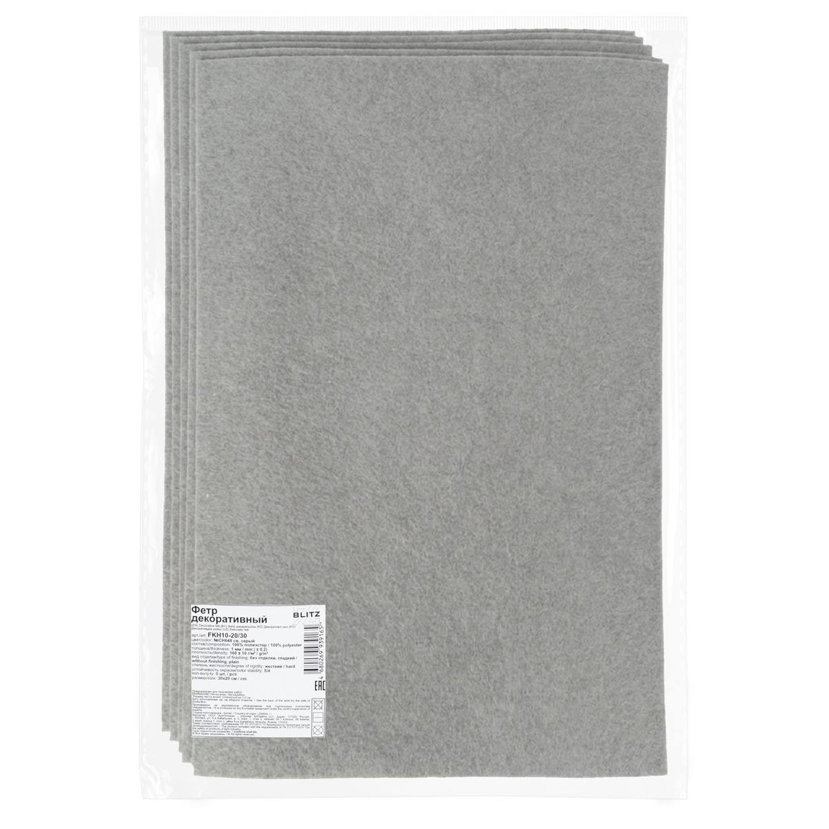 Фетр "BLITZ" FKH10-20/30 декоративный 1 мм 20 см х 30 см 5 шт №CH648 св. серый