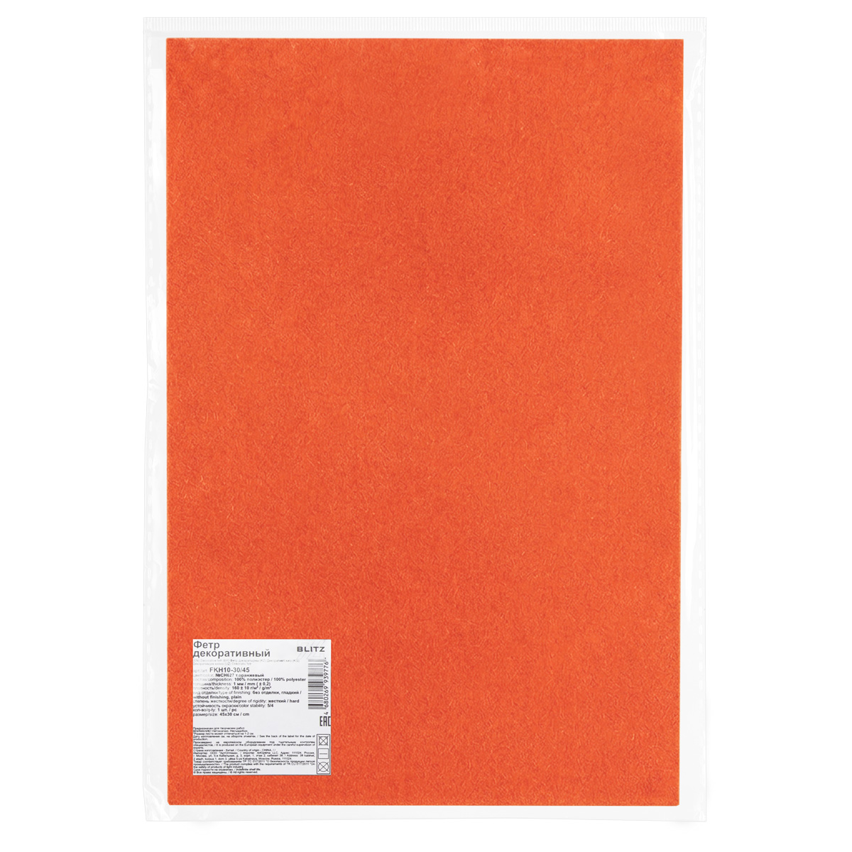 Фетр "BLITZ" FKH10-30/45 декоративный 1 мм 30 см х 45 см №CH627 т.оранжевый