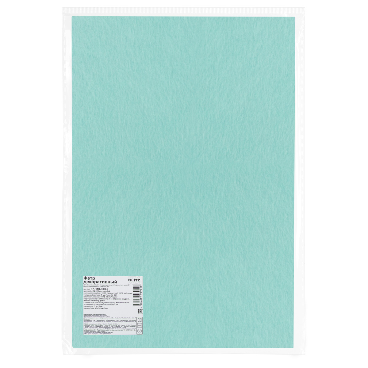 Фетр "BLITZ" FKH10-30/45 декоративный 1 мм 30 см х 45 см №025 св. голубой