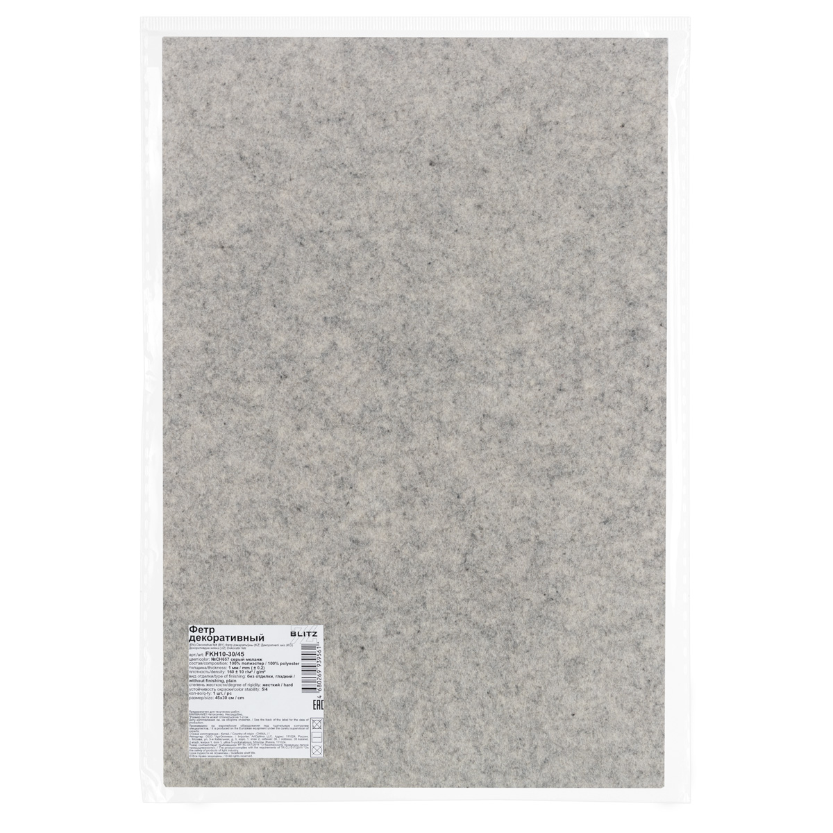 Фетр "BLITZ" FKH10-30/45 декоративный 1 мм 30 см х 45 см №СН657 серый меланж
