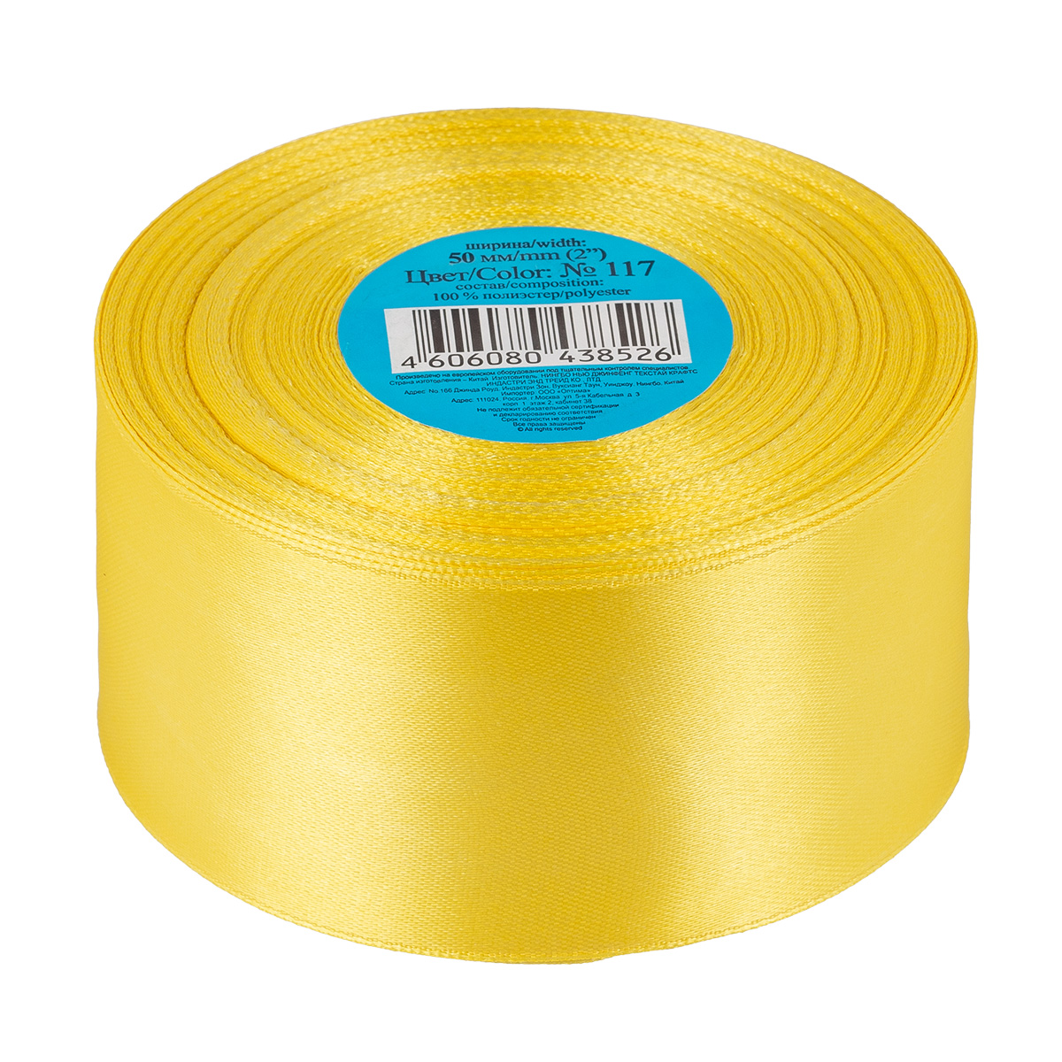 Лента атласная 50 мм ( 2 ") "Gamma" 33 м ± 2 м №117 бл.желтый
